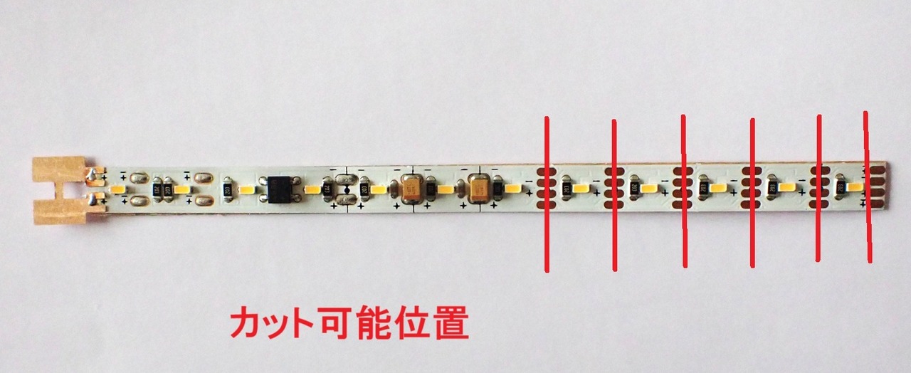 昼夜問わずちょうどいい明るさ!Nゲージ車両用新LED室内灯「グランライトⅢ」ミドルチャージバージョン10両セットが登場! カトー用ハンダ付不要/簡単取付10両セットです。通電OFF後数秒秒点灯します。走行時のチラツキなし。リニューアルした大容量高分子コンデンサー2個実装しております。KATOの車両に取付できます。室内灯ユニットは幅8mm,厚さ1.0mm,長さ137.5mmでLED12個です。LEDは画像の通りカットでき,通勤/近郊形から寝台車両,などほとんどの車両に取付でき,車端まで均一に綺麗に点灯いたします。カットしたLEDは室内灯ユニットに追加,またはストラクチャーなどに再利用できます。取付は室内灯ユニットの電極板をペンチなどで折り曲げます。直接またはプラ板に貼って屋根裏に貼るか,またプラ板に貼って床下にセットしても出来ます。1両あたりの内容は電極板付き室内灯ユニット(12LED) x 1 集電シュー x 2, プラ板 x 1,最大消費電流は6mA/1両あたり。照度はグランライトⅢ通常とダークバージョンのほぼ中間の明かるになります。チラツキ防止コンデンサーを2個実装しております。点灯色は白色/ナチュラルホワイト色/電球色から選べます。スタンダードのコントローラーでも低速から点灯いたします。ぜひこの機会にアレンジを楽しんで、車両の魅力を引き立てましょう!