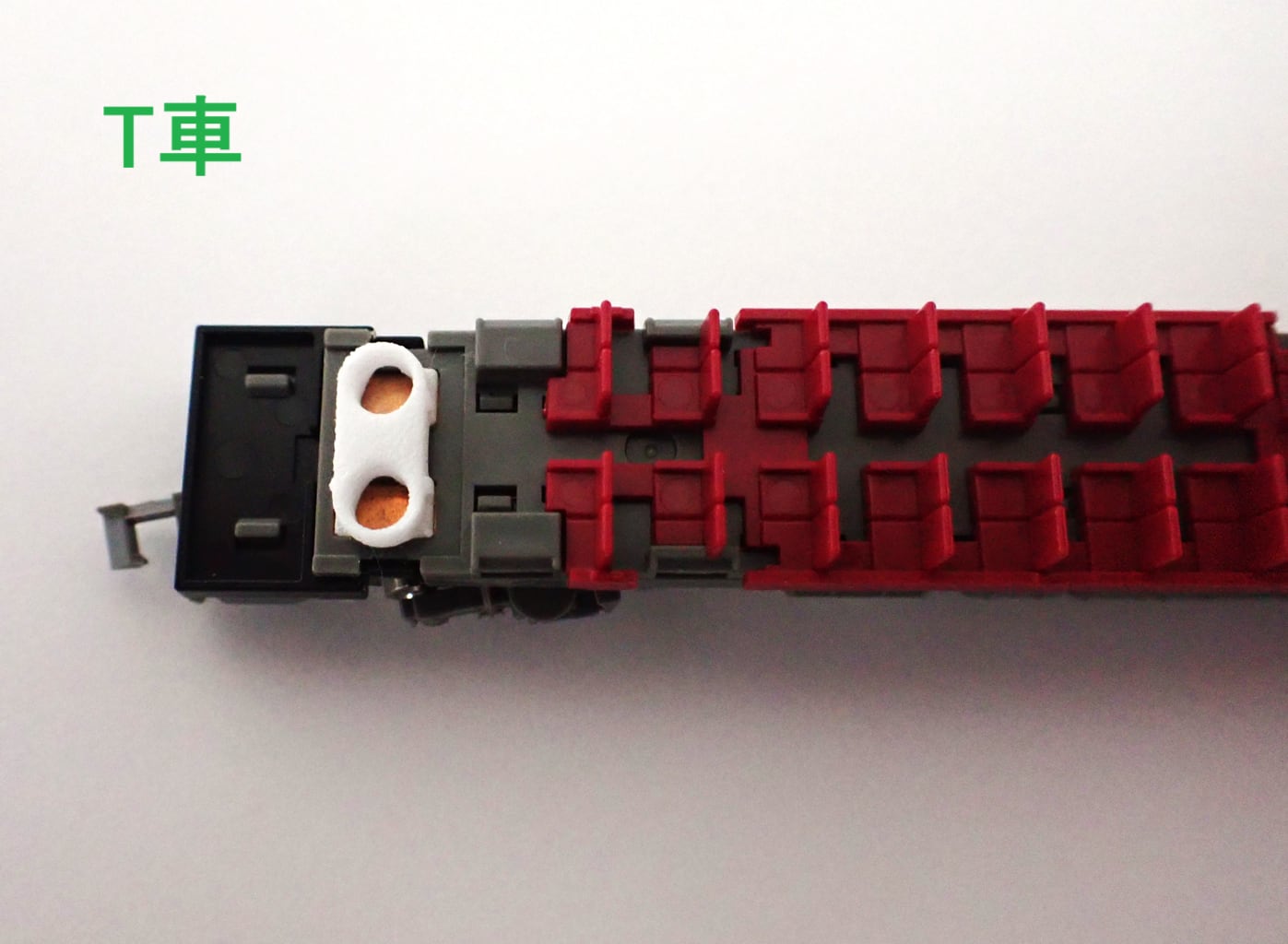 スプリングずれんゾウを車端の集電部分に嵌めるだけ。室内灯に取り付けた集電スプリングを入れます。