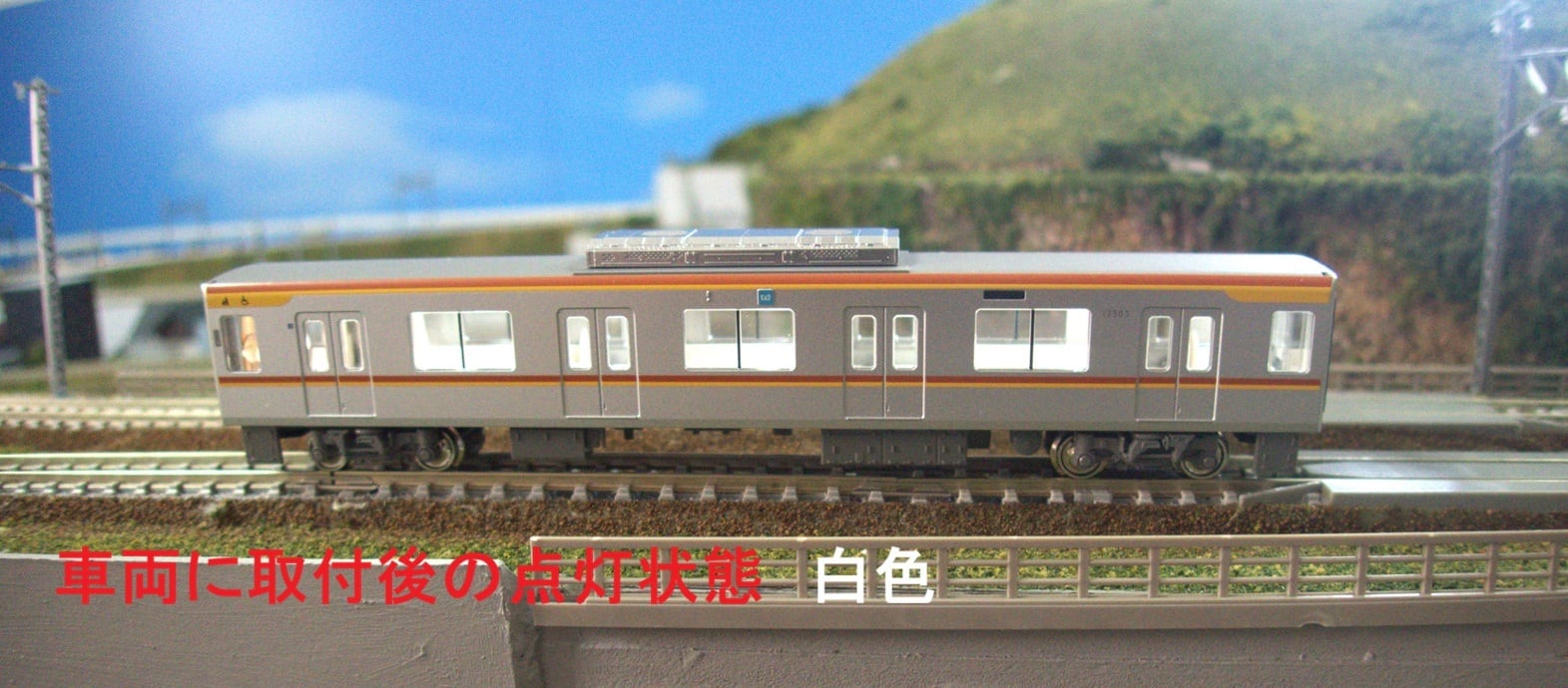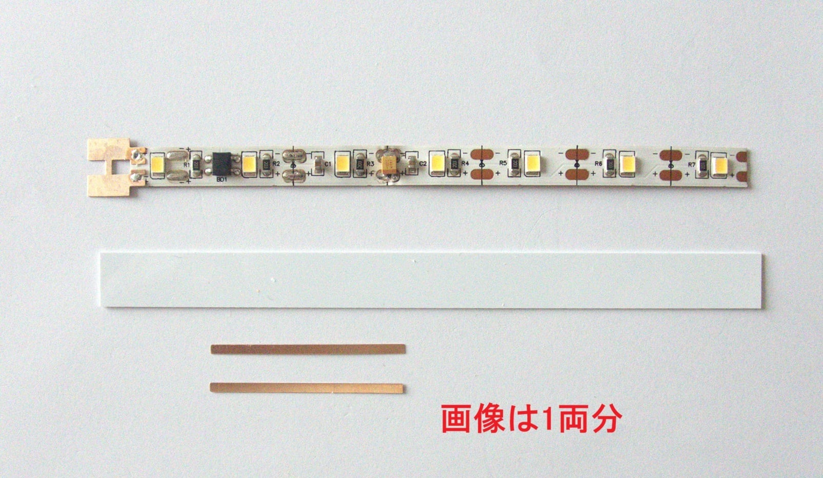 グランライトアニバーサリーモデル! 限定品! グランライトⅡミドルチャージ(カトー用ハンダ付不要/簡単取付)10両セットを発売しました。 通電OFF後数秒点灯します。走行時のチラツキなし。リニューアルした大容量高分子コンデンサー1個実装しております.。KATOの車両に対応しています。室内灯ユニットは幅8mm,厚み最大2.0mm,LED1.0mm 長さ126mmでLED7個です。明るさは別出品のグランライトⅢミドルとほほ同じになります。取付は室内灯ユニットの電極板をペンチなどで折り曲げます。直接またはプラ板に貼って屋根裏に貼るか,またプラ板に貼って床下にセットしても出来ます。通勤/近郊形などの車両も車端まで均一に綺麗に点灯いたします。 1両あたりの内容は 室内灯ユニットx 1, 集電シュー x 2,プラ板 x 1, 最大消費電流は1両あたり約3mA。チラツキ防止コンデンサーを2個実装しています。スタンダードのコントローラーでも低速から点灯いたします。点灯色は白色/ナチュラルホワイト色/電球色から選べます。
