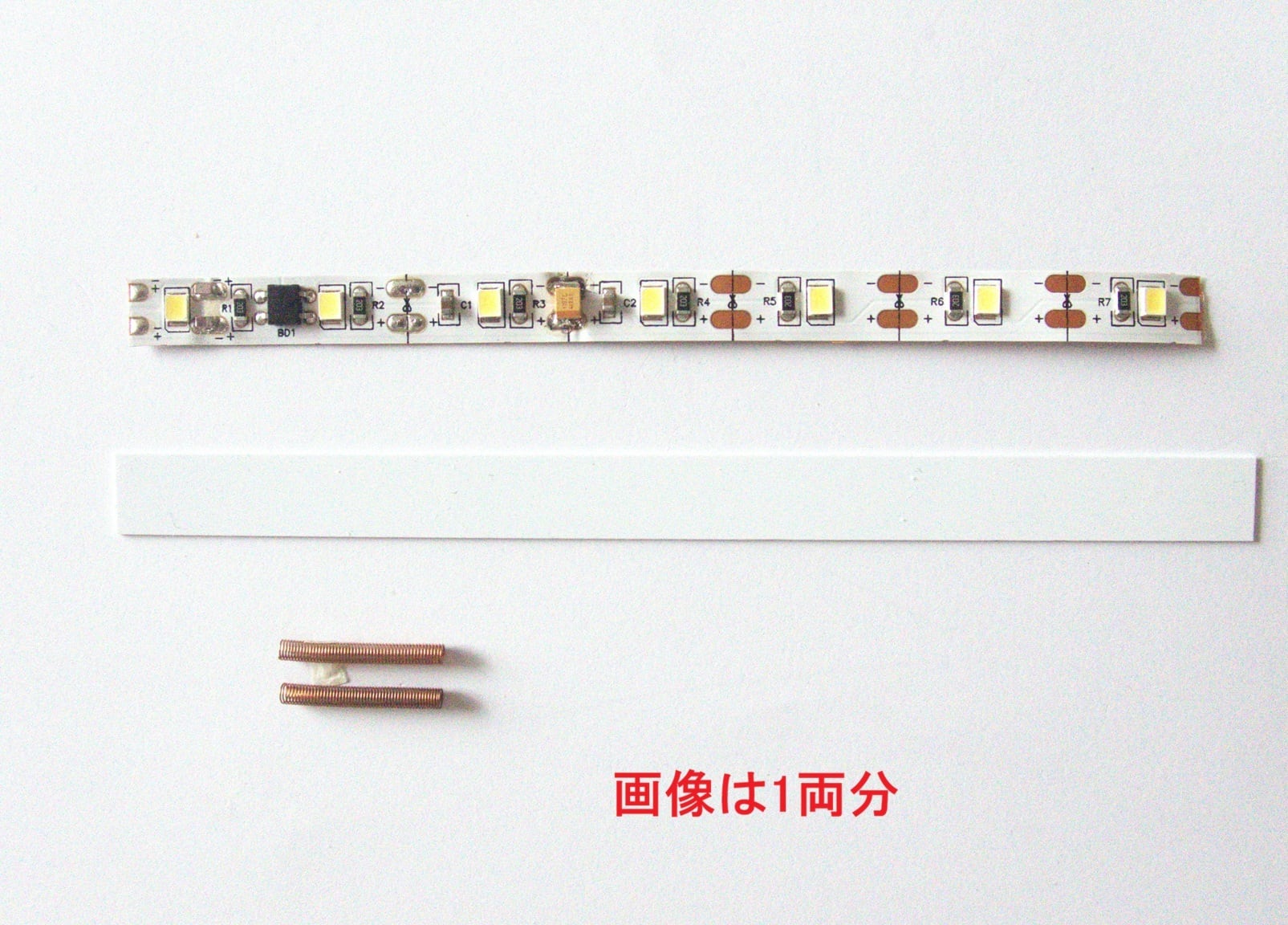 グランライトアニバーサリーモデル! 限定品! グランライトⅡミドルチャージ(トミックス他用ハンダ付不要/簡単取付)10両セットを発売しました。 通電OFF後数秒点灯します。走行時のチラツキなし。リニューアルした大容量高分子コンデンサー1個実装しております.。TOMIX他の車両に対応しています。室内灯ユニットは幅8mm,厚み最大2.0mm,LED1.0mm 長さ126mmでLED7個です。明るさは別出品のグランライトⅢミドルとほほ同じになります。取付は付属の集電スプリングを指で摘まんで金具に嵌めるだけです。直接またはプラ板に貼って屋根裏に貼るか,またプラ板に貼って床下にセットしても出来ます。通勤/近郊形などの車両も車端まで均一に綺麗に点灯いたします。 1両あたりの内容は 室内灯ユニットx 1, 集電スプリング x 2,プラ板 x 1, 最大消費電流は1両あたり約3mA。チラツキ防止コンデンサーを2個実装しています。スタンダードのコントローラーでも低速から点灯いたします。点灯色は白色/ナチュラルホワイト色/電球色から選べます。