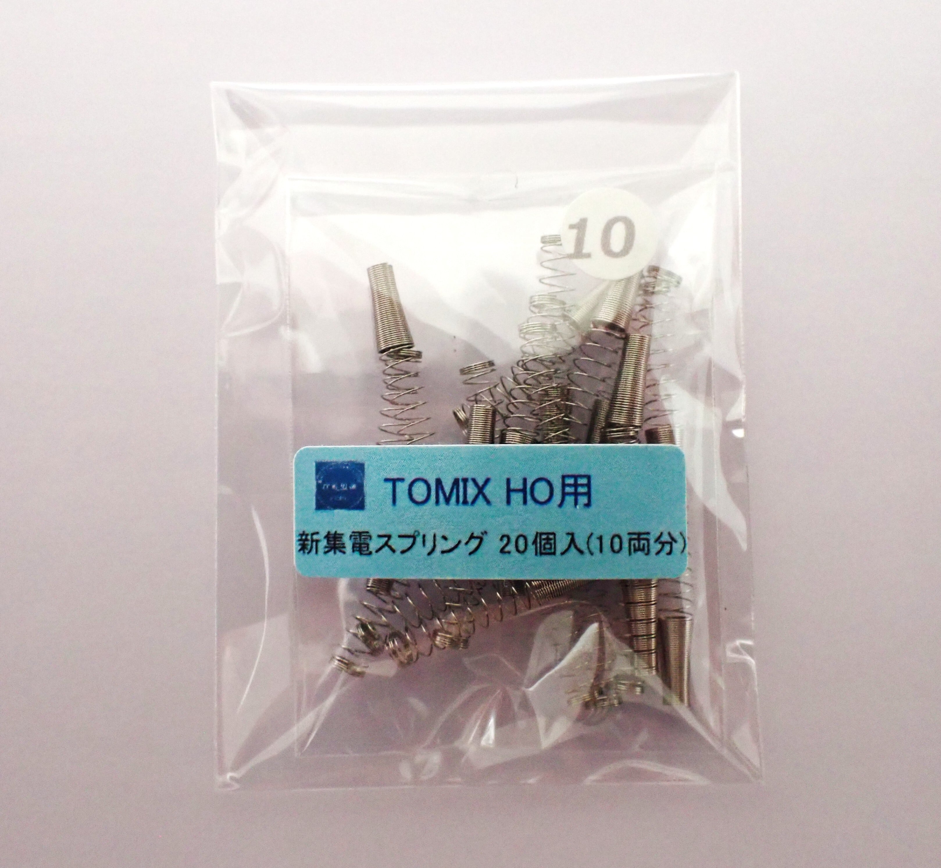 TOMIX(HO車両)用に取付する新集電スプリングです。グランライトHO/グランライトブラス/グランライトアキュムに使用できます。20個入り10両分。