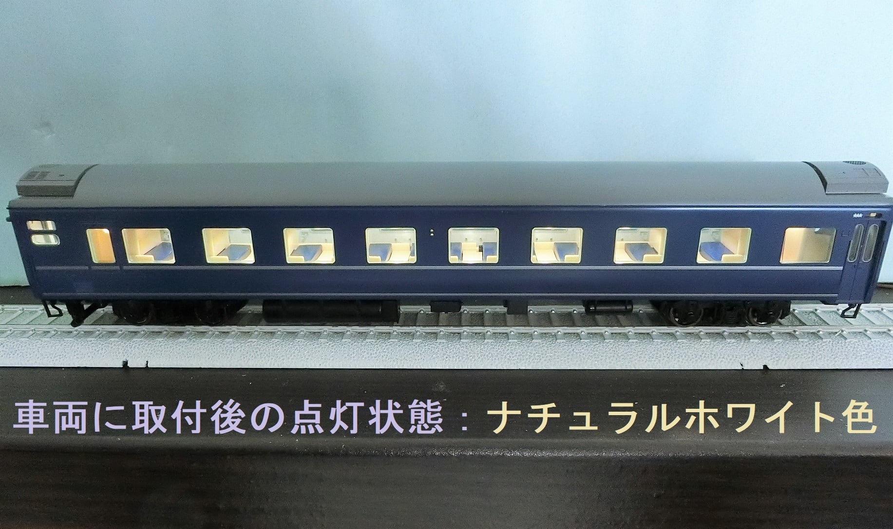 TOMIX以外の車両も配線すれば取付できます。寝台車両にも均一に点灯いたします。チラツキ防止コンデンサーを1両あたり2個実装しています。消費電流は1両あたり30mA。点灯色は白色/ナチュラルホワイト色/電球色から選択願います。